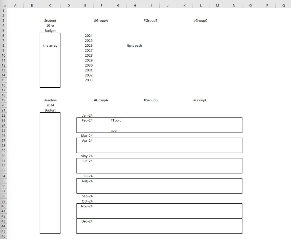The 2024 tab is for more concise planning of your task buildup to the yearly: